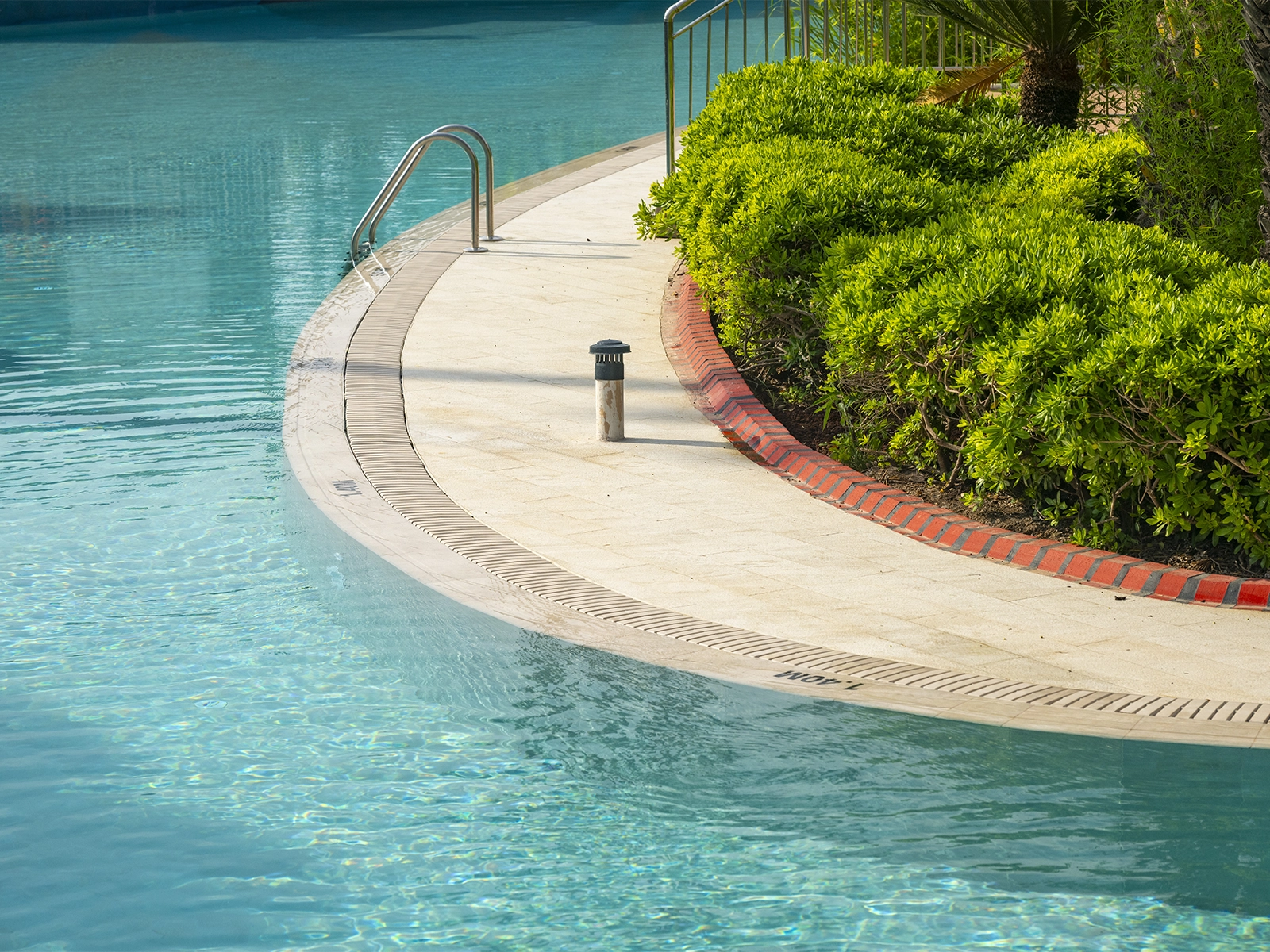 The Fame Residence Lara & SPA Hotel Pool Project emphasizes the clarity of the water with the Verde Guatemala series in deep green tones, while the Antique Grey series provides a textural balance that harmonizes with the natural surroundings. In the terrace and surrounding areas, the Pool Garden Beige series introduces a bright and inviting atmosphere with its light shades. Complementary details are enriched with Antique Grey and Pool Garden Beige Outer Trim, Scoth Corners, and Outer Angle Corners, ensuring both technical and aesthetic continuity in transitions. The Pool Garden Beige copings and flex gratings further enhance safety while offering Easy Maintenance and user convenience.