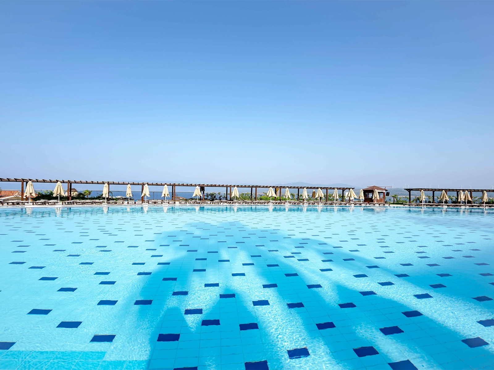 Euphoria Aegean Resort & Spa misafirlerine sunduğu lüks konaklama deneyimini farklı konseptlerdeki havuzlarıyla tamamlıyor. Açık ve kapalı havuzlarda tercih edilen Olimpik Seri Porselen Havuz Karosu uluslararası standartlara uygun dayanıklılığı ve estetik görünümü ile projeye değer katıyor. Bu özel serinin düşük su emme oranı uzun ömürlü kullanım sağlarken PTV ≥ 45° kaymazlık değeri ile güvenliği en üst seviyede tutuyor. Açık havuzlarda canlı ve berrak bir su görünümü oluştururken kapalı havuzlarda modern mimariyle uyumlu şık bir atmosfer yaratıyor. Yüksek yoğunluklu porselen yapısı sayesinde hem yoğun kullanıma uygun hem de bakım kolaylığı sağlayan Olimpik Seri, otelin spor, dinlenme ve eğlence odaklı tüm alanlarında ideal çözüm olarak öne çıkıyor.